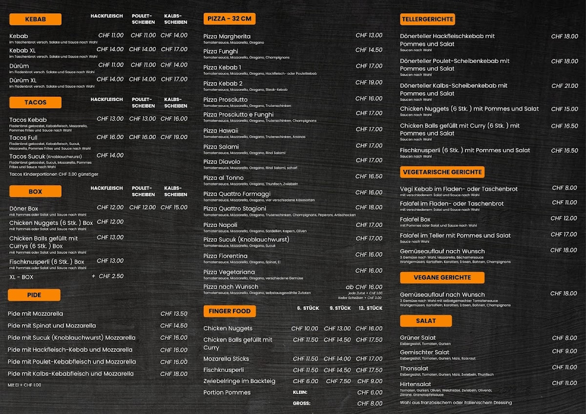 Introducing Punkt72, a culinary gem nestled in the heart of Berg, Switzerland. Located on Hauptstrasse 46, this charming eatery specializes in delectable kebabs and tacos, capturing the essence of comfort food with a twist. The menu shines with options like kebabs made from succulent Hackfleisch or tender Kalbsscheiben, all enveloped in freshly baked Taschenbrot and paired with a choice of vibrant salads and sauces.